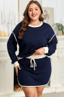 Navy Blue Plus Color Block Drop Shoulder Top and Lace-up Skirt Outfit