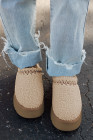 Oatmeal Embroidered Sherpa Plush Thick Sole Snow Boots