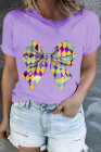 Plus Size Orchid Petal Checkered Bow Knot Print O Neck T Shirt