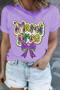 Plus Size Orchid Petal mardi gras Bow Graphic Crewneck Tee