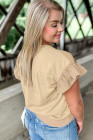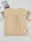 Plus Size Parchment Ruffled Short Sleeve Bowknot Applique Crew Neck Top
