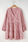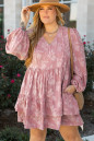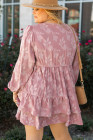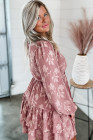 Plus Size Peach Blossom Floral Surplice V Neck Tiered Ruffled Dress