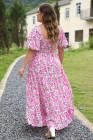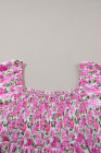 Plus Size Pink Floral Print Smocked Puff Sleeve Dress