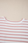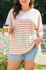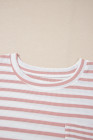 Plus Size Pink Stripe Waffle Knit Pocketed Half Sleeve T Shirt