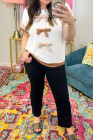 Plus Size Apricot Bowknot Applique Ribbed Top