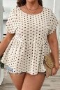 Plus Size Apricot Polka Dot Print Button Detail Short Sleeve Babydoll Blouse