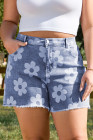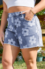 Plus Size Ashleigh Blue Floral Pattern High Waist Raw Hem Denim Shorts