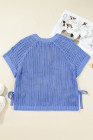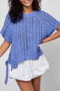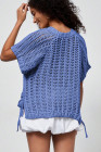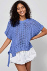 Plus Size Ashleigh Blue Open Knit Bow Tie Short Sleeve Sweater