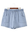 Plus Size Beau Blue Pocketed Drawstring High Waist Denim Shorts