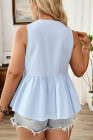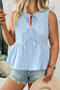 Plus Size Beau Blue Solid Color Bow Tie Peplum Tank Top