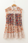 Plus Size Beige Floral Patchwork Button Front Collared Mini Dress