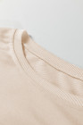 Plus Size Beige Flower Patched Mineral Wash Round Neck Top