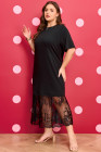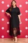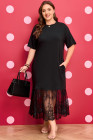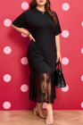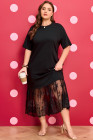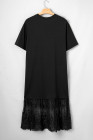 Plus Size Black Lace Hem Patchwork T Shirt Midi Dress