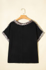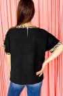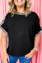 Plus Size Black Leopard Patchwork Round Neck Loose Tee