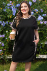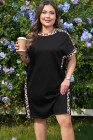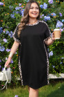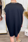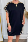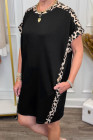 Plus Size Black Leopard Print Patchwork Shift T Shirt Dress with Pockets