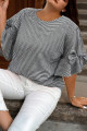 Plus Size Black Plaid Bow Decor Bell Sleeve Round Neck Jumper