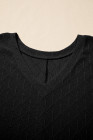 Plus Size Black Pointelle Rhombus Knit V Neck Loose Top