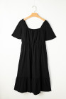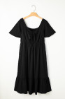 Plus Size Black Short Sleeve Lace-up High Waist Midi Dress