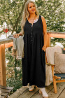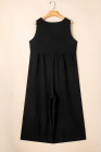 Plus Size Black Sleeveless Button Front Loose Jumpsuit