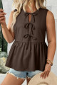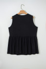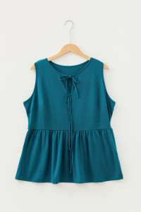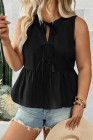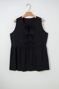 Plus Size Black Solid Color Bow Tie Peplum Tank Top