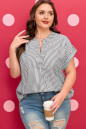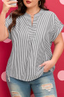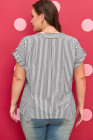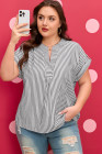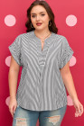 Plus Size Black Stripe V Neck Roll-tab Short Dolman Sleeve Blouse