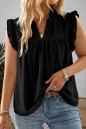 Plus Size Black Swiss Dot Ruffle Lace Trim V Neck Tank Top