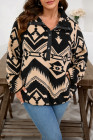 Plus Size Black Western Aztec Pattern Half Button Collared Plush Sweatshirt