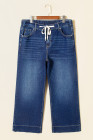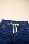 Plus Size Blue Acid Wash Contrast Lace-up Jeans