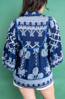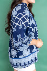 Plus Size Blue Floral Printed Notched Neck Long Sleeve Blouse