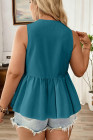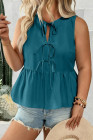 Plus Size Blue Sapphire Solid Color Bow Tie Peplum Tank Top