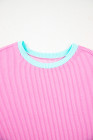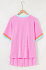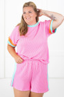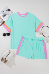 Plus Size Bonbon Color Block Corded Knit Tee and Shorts Set