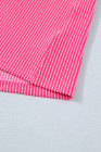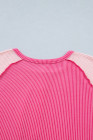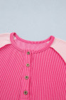 Plus Size Bright Pink Twisted Rib Color Block Patchwork Short Sleeve Henley Top