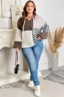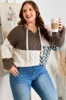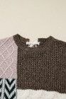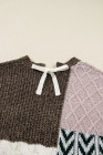 Plus Size Brown Color Block Patchwork Knotted Back Loose Fit Sweater