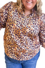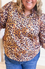 Plus Size Brown Leopard Frilled Stand Neck Blouse