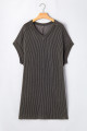 Plus Size Carbon Grey Corded V Neck T Shirt Dress with Pockets