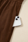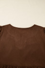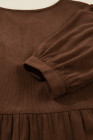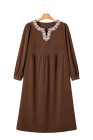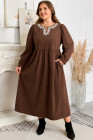 Plus Size Coffee Embroidered Notched Neckline Textured Pleated High Waist Midi Dress