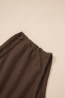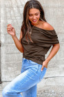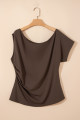 Plus Size Coffee Solid Color Asymmetric Neck Short Sleeve Blouse
