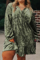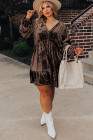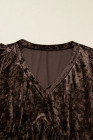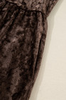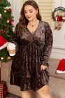 Plus Size Coffee Velvet Babydoll Mini Dress with Puff Sleeve