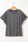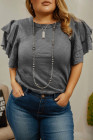 Plus Size Dark Grey Double Ruffled Short Sleeve Top
