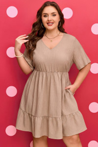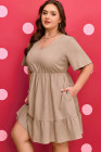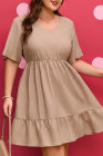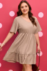 Plus Size Dark Khaki Textured Ruffled Short Sleeve Dress