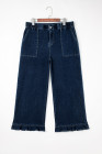Plus Size Dirty blue Elastic Waist Ruffled Wide Leg Denim Pants