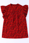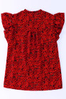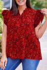 Plus Size Fiery Red Rose Floral Print Ruffle Sleeve Shift Top