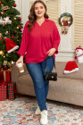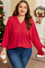 Plus Size Fiery Red Smocked Cuff Dolman Oversized Tunic Blouse