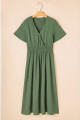 Plus Size Four Leaf Clover Surplice Neckline Shirred High Waist Maxi Dress