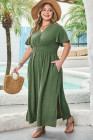 Plus Size Four Leaf Clover Surplice Neckline Shirred High Waist Maxi Dress