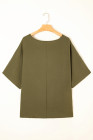 Plus Size Four Leaf Clover Textured Half Sleeve V Neck T Shirt with Chest Pocket