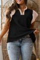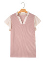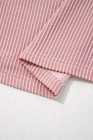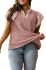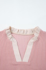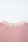 Plus Size Fushia Contrast Frilled Neckline Ruffled Short Sleeve Ribbed Textured Blouse