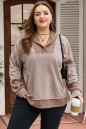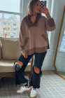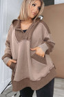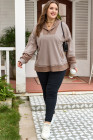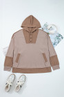 Plus Size Goat Waffle Contrast Patchwork Pocketed Hoodie