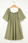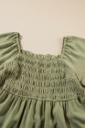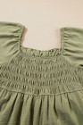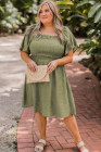 Plus Size Grass Green Frilly Square Neck Flutter Sleeve Smocked High Waist Dress