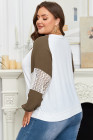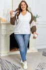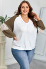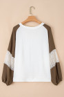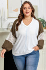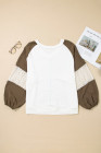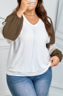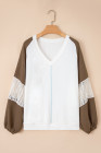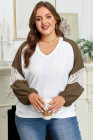 Plus Size Green Colorblock Lace Patchwork Balloon Sleeve V Neck Blouse